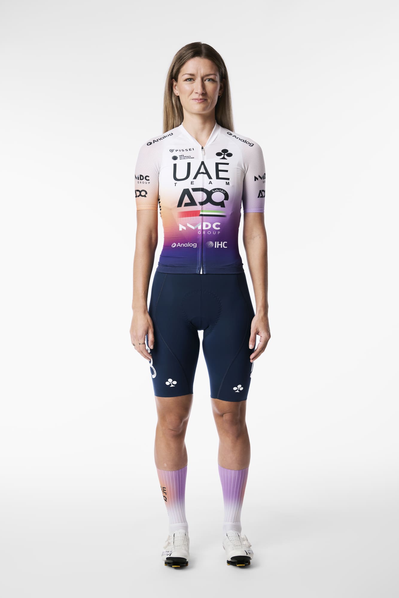 The gradient stands at the core of the new design: a living, unpredictable element that embodies movement, transition and flow. It reflects the spirit of women’s cycling and the identity of UAE Team ADQ, where the spaces in between become just as powerful as the defining moments.