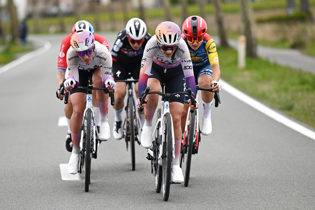As expected, the Kemmelberg proved decisive. After an initial selection, it was the second ascent on the cobbled section, approached from the opposite side, that made the difference. Following an early effort by Silvia Persico and a sharp acceleration from Lorena Wiebes (SD Worx), a leading group of five riders formed, including UAE Team ADQ teammates Eleonora Gasparrini (third at Milano-Sanremo the previous week) and Karlijn Swinkels (winner of the Trofeo Binda two weeks earlier).
