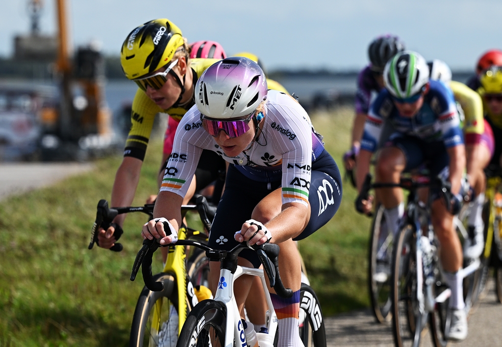The Irish rider, together with her teammate Karlijn Swinkels, was among the protagonists of the 17-rider breakaway that dominated the day. Taking advantage of a split in the crosswinds, the group reached the finish line with a lead of 7 minutes and 45 seconds.