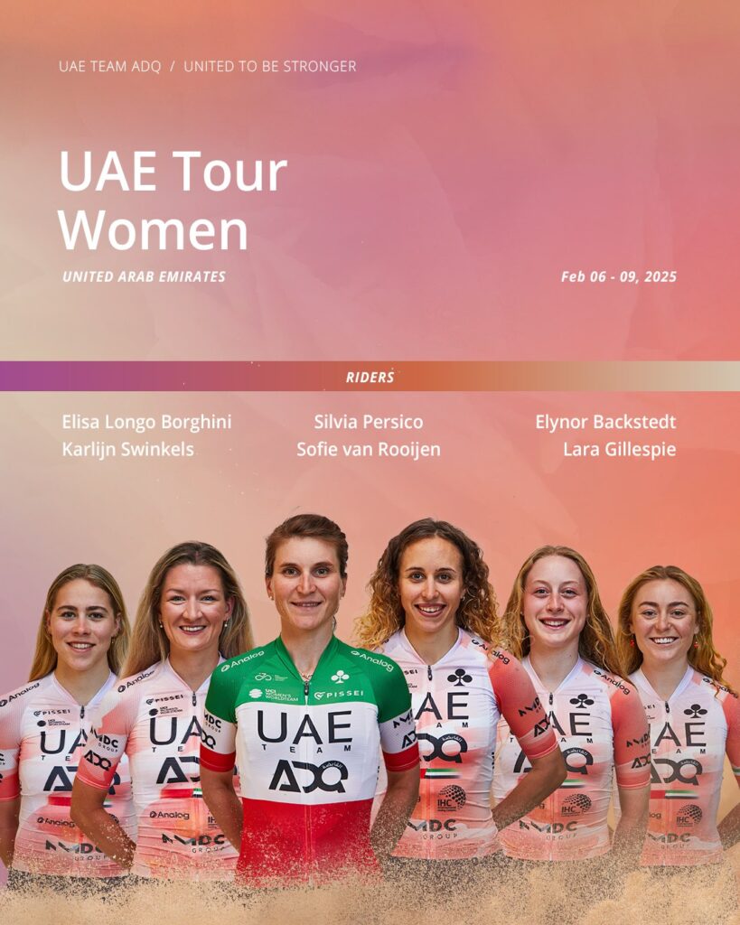 UAE Team ADQ, which yesterday unveiled a special jersey inspired by the Desert Rose, is set to participate in its home race, the UAE Tour Women, scheduled from Thursday, February 6, to Sunday, February 9, 2025, in the United Arab Emirates. The six riders selected for this occasion represent a blend of seasoned riders and […]
