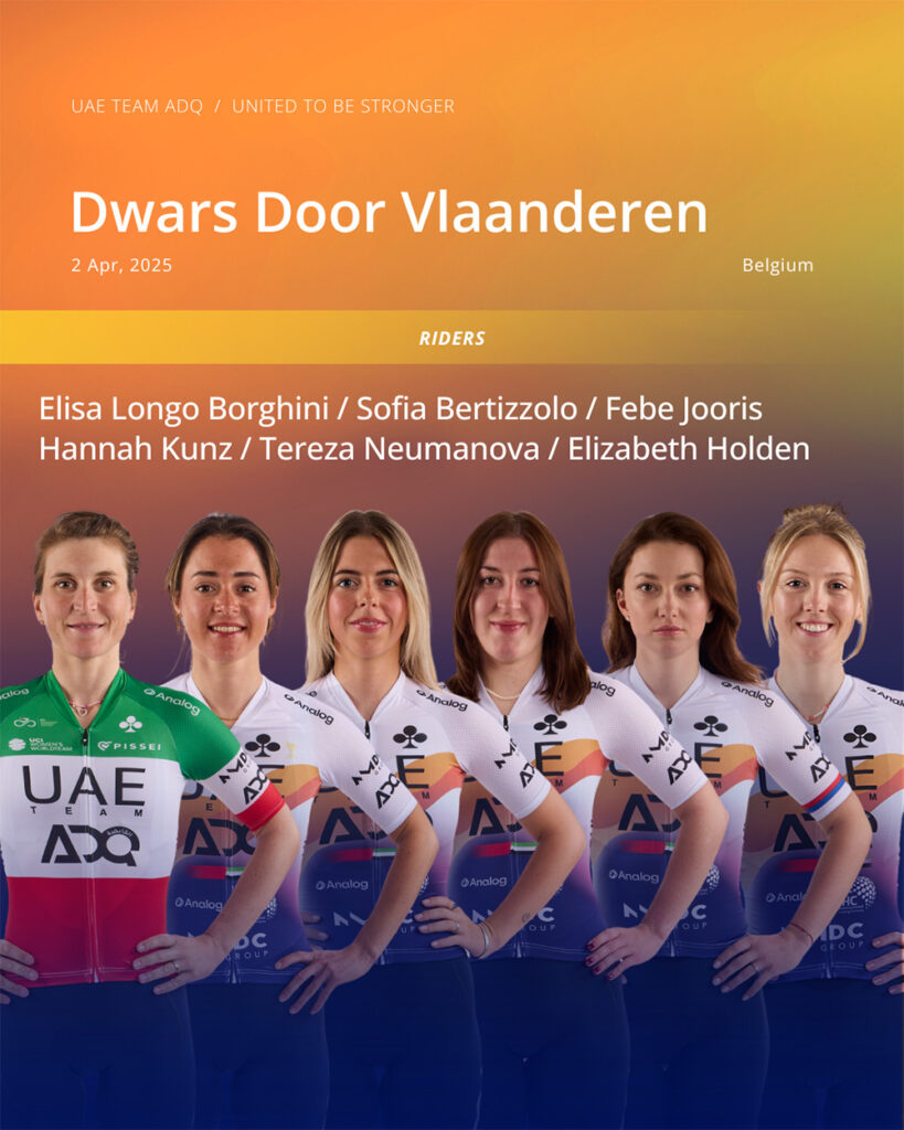 02/04/2025 Dwars door Vlaanderen (1.Pro) Waregem – Waregem (128.5 km) | BELGIUM Start: 14:40 CEST Finish: 18:00 CEST Live on discovery+ and Eurosport from 16:00 CEST LINE UP: Elisa Longo Borghini, Sofia Bertizzolo, Lizzie Holden, Tereza Neumanova, Febe Jooris, Hannah Kunz. Sports Directors: Alejandro Gonzalez-Tablas and Cristina San Emeterio. More info: https://www.ddvl.eu/en/race/women-elite/race-info […]