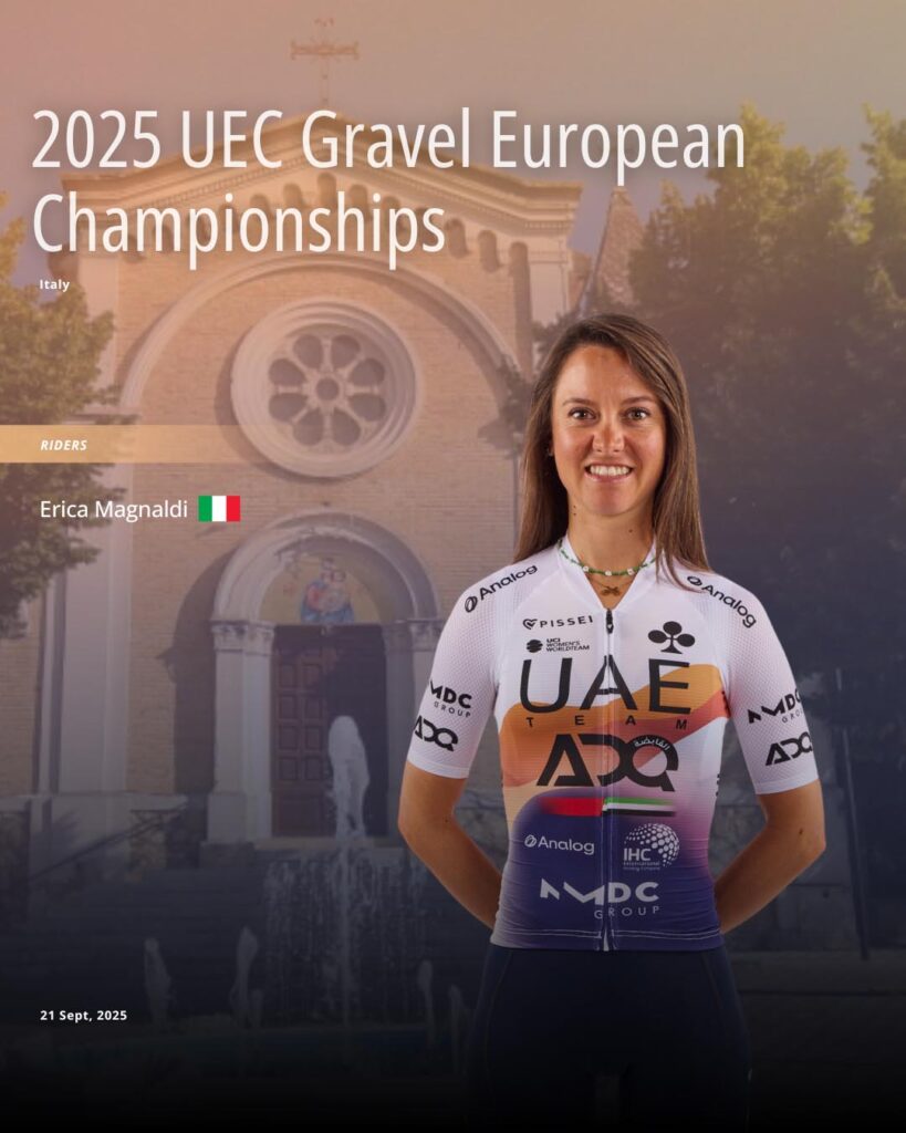 Erica Magnaldi is the new Gravel Euroepan Champion. The Italian rider claimed victory today at the 2025 UEC Gravel European Championships held in Avezzano, Italy, on an 88.8-kilometer course. With a touch of luck – always welcome in sport – the rider from Cuneo, racing for UAE Team ADQ and wearing the ‘azzurra’ jersey of […]