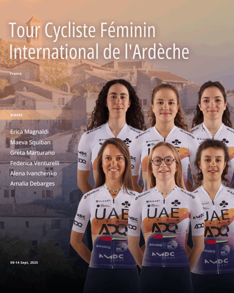 09-14/08/2025 Tour Cycliste Féminin International de l’Ardèche (2.1) 6 Stages race | FRANCE LINE UP: Amalia Debarges, Alena Ivanchenko, Erica Magnaldi, Greta Marturano, Maeva Squiban, Federica Venturelli. Sports Director: Alejandro Gonzalez-Tablas. THE STAGES: 09/09/2025 – Stage 1 | Laudun-l’Ardoise – Laudun-l’Ardoise (127 km) Start: 13:45 – Finish: 17:15 10/09/2025 – Stage […]