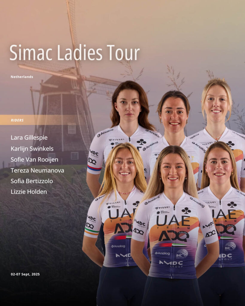 02/09/2025 – 07/09/2025 Simac Ladies Tour (2.WWT) 6 Stages race | BELGIUM/NETHERLANDS LINE UP: Sofia Bertizzolo, Lara Gillespie, Lizzie Holden, Tereza Neumanova, Karlijn Swinkels, Sofie van Rooijen. Sports Director: Davide Gani. THE STAGES: 02/09/2025 – Stage 1 | Leuven – Leuven (81.3 km) Start: 12:00 – Finish: 15:00 CET Live on discovery+/Eurosport from […]