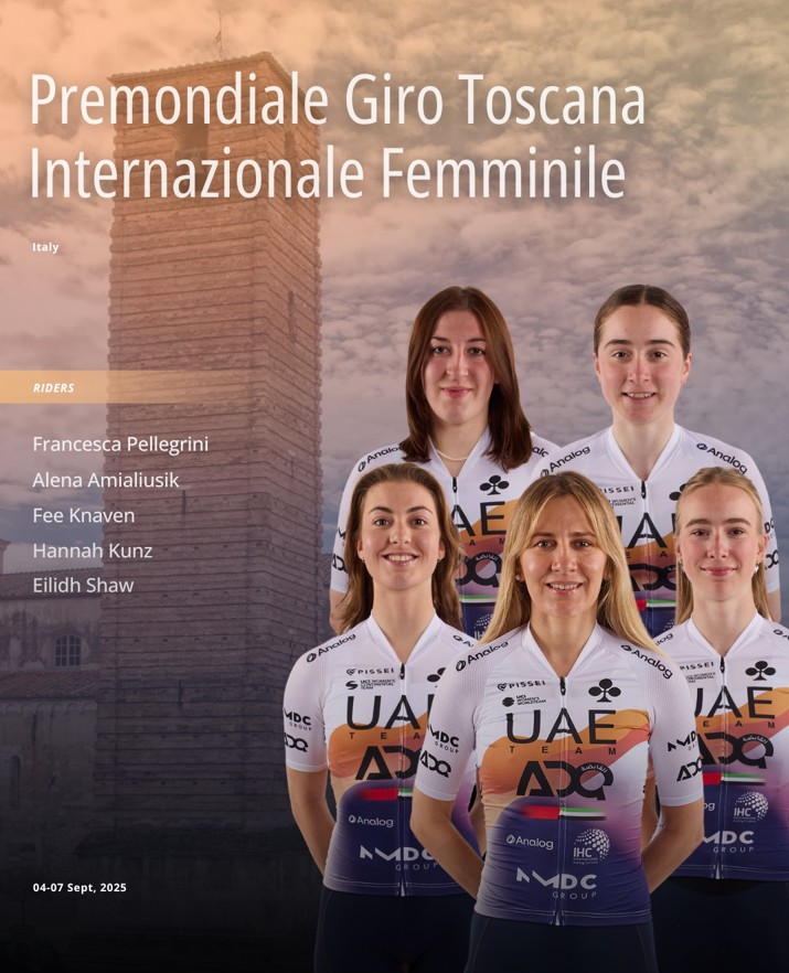 04/09/2025 – 07/09/2025 Premondiale Giro Toscana Internazionale Femminile (2.2) 4 Stages race | ITALY LINE UP: Alena Amialiusik, Fee Knaven, Hannah Kunz, Francesca Pellegrini, Eilidh Shaw. Sports Director: Aida Nuño. THE STAGES: 04/09/2025 – Stage 1 (TTT) | Viareggio – Viareggio (5.1 km) Start: 16:00 – Finish: 17:00 CET 05/09/2025 – Stage […]