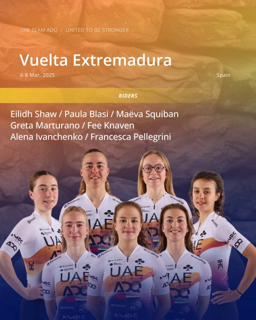 From 6/03 to 8/03 Vuelta Extremadura Féminas (2.1) SPAIN LINE UP: Alena Ivanchenko, Greta Marturano, Maeva Squiban, Francesca Pellegrini, Fee Knaven, Eilidh Shaw, Paula Blasi. Sports Directors: Cristina San Emeterio and Aida Nuño. THE STAGES: 06/03/2025 | Stage 1a (ITT) | Mérida – Mérida (km 9.11) Start: 10:00 – Finish: 12:15 06/03/2025 […]